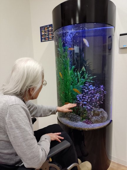 エレベーターを待っている間などに、「かわいいわね」「黒い子は元気かな?」と皆様気にかけて鑑賞されています。