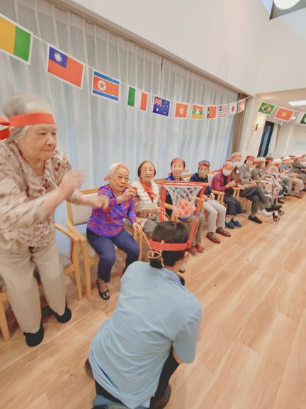 【玉入れ】は、4名のスタッフがお客様のところにまわって玉を入れていただくスタイルでしたが、背の高いスタッフもいれば、投げやすい高さでゆっくり待ってくれるスタッフもいたり、早く通りすぎるスタッフもいたりして、皆様もスタッフも大変盛り上がりました!!(スタッフ同士がぶつかって、玉を落としてしまうというアクシデントもありました笑)