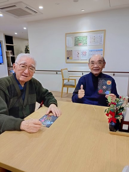 本日のアクティビティは〔ネイルケア〕だったのですが、男性のお客様たちには、昨日の続きのスクラッチアートをしていただきました!