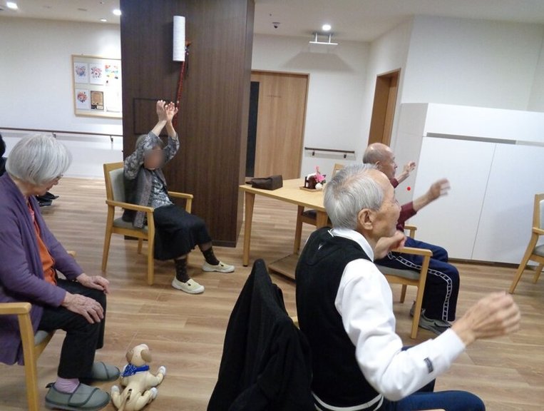 今日は「きなこ」も参加していましたが、甘えたがりの「きなこ」は、体操中も皆様にすり寄って行くものですから…体操が上の空に…