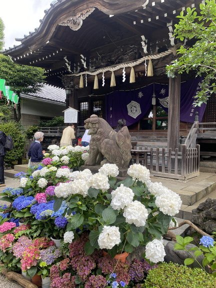 「神社も紫陽花もこのくらいがちょうどいいわね」と入居者の方のお声。