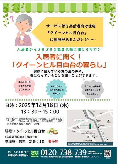 「入居者に聞く!クイーンヒル目白台の暮らし」開催のお知らせ