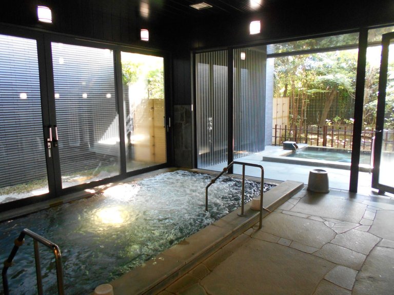 姶良温泉の源泉を引いており、1Fには2種類の露天風呂があります。一つは日本の季節感を楽しめる「気樂(きらく)」です。中湯と露天風呂が楽しめます。