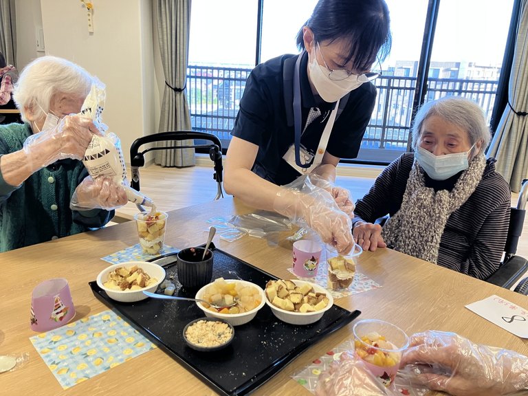 ご自身でお好きな果物を選んでいただき、オンリーワンのパフェが完成できました🍮