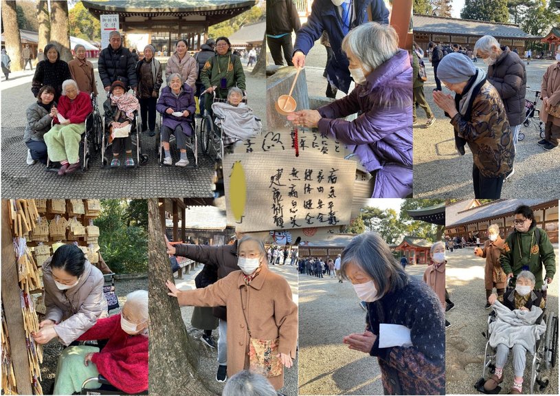 ご入居者様も「今年も元気に過ごせますように」と手を合わせ