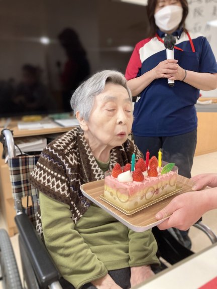 毎月、その月のお誕生日のご入居者様をお祝いする誕生会を開催しています。今月は4名の方をお祝いしました。