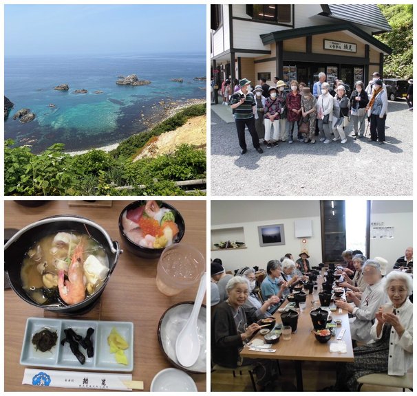晴天の6月20日(金)に琴似施設と合同積丹バスツアーをで楽しんで来ました。琴似施設から21名と月寒公園施設から4名のほか、職員3名が同行しての合計28名が旅行を楽しんで参りました。