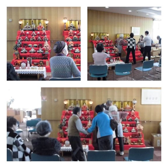 琴似施設では、3/1にひな祭りのイベントとして甘酒振舞いと2台目の雛段飾りを入居者様と一緒に行いました。