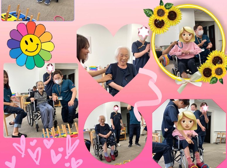ご入居者様や職員も一緒に体操し、体をあたためた後に輪投げゲームを行いました😊🌈
