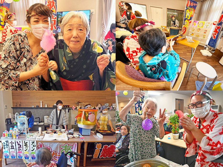 ヘルパーがかき氷やフルーツのコーナーの売り子になって・・・
