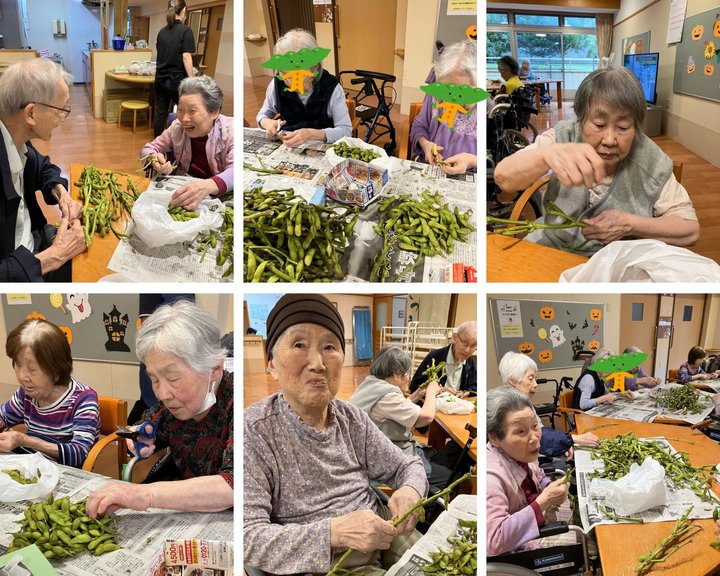 セントポーリア愛の郷の周辺は、田や畑も多く、今回はご家族が大事に育てた『枝豆』を枝ごと持ってきてくださいました🍀