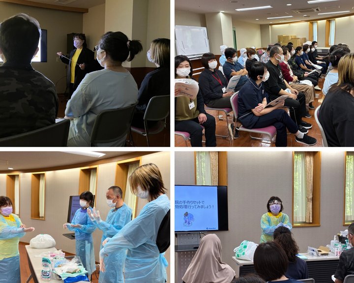 今回は感染力が非常に強い「ノロウイルス感染症」の感染対策や吐物処理について重点的に学び、最期には「個人防護具」の着脱を演習しました🍀