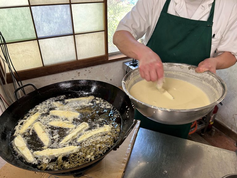 3か月に一度の誕生会のご馳走は、旬のものと定番の揚げたての天ぷらです。
