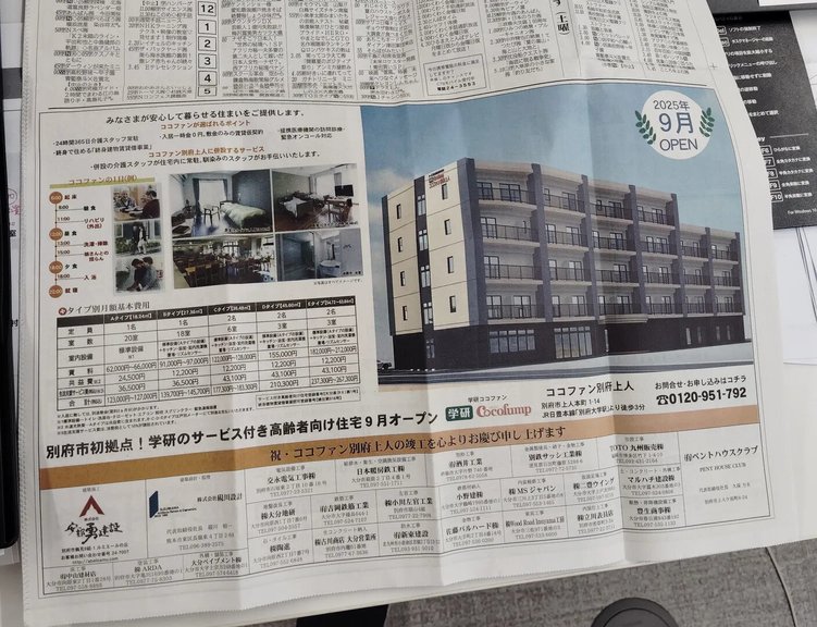別府市民に人気の今日新聞に、8/8の朝刊に広告が載りました! オーナー様の計らいです!