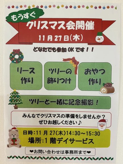 そこで、私たちのデイサービスでも少し早めのクリスマス会を開催いたします🎉