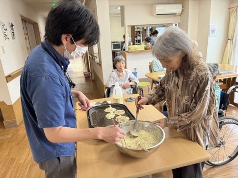 新しく入居された利用者様の歓迎会も兼ねてお好み焼きパーティーを開催しました。