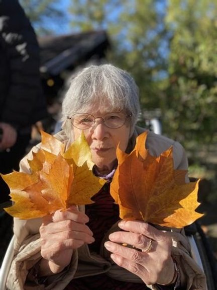 「顔より大きいよ~」「ほんとだね、隠れちゃうよ」とおっしゃる皆様。