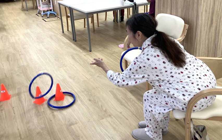 【あおぞらデイサービスセンター油山】輪っかでストレッチ&輪投げ!