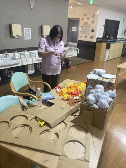 すっかり涼しくなってきましたが、はなの家のスタッフさんは今日もレクリエーションの準備に奮闘しています!
