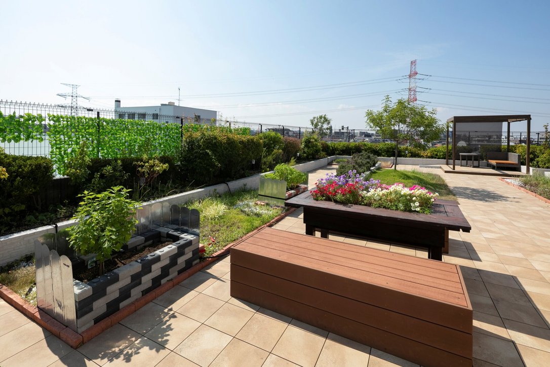 <爽やかな風を感じながら、穏やかな時間を楽しめる屋上庭園>